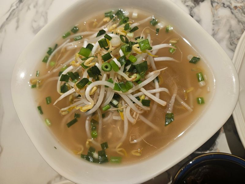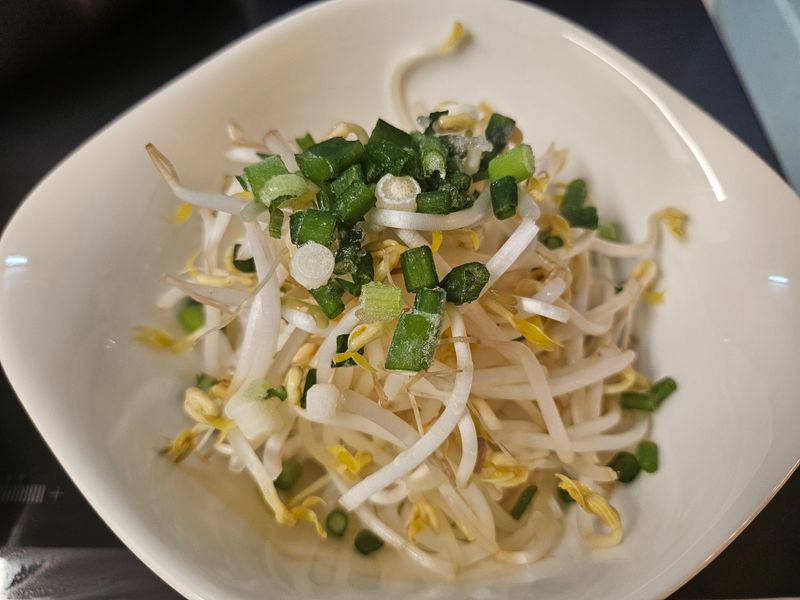 6. 4의 그릇에 담아놓은 면 위에 숙주, 쪽파를 올린 후 팔팔 끓인 육수를 부어 쌀국수 완성!