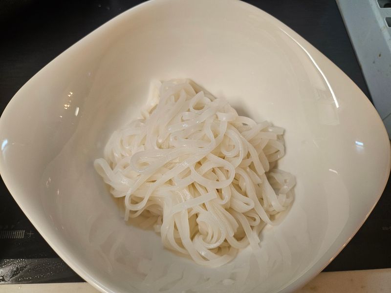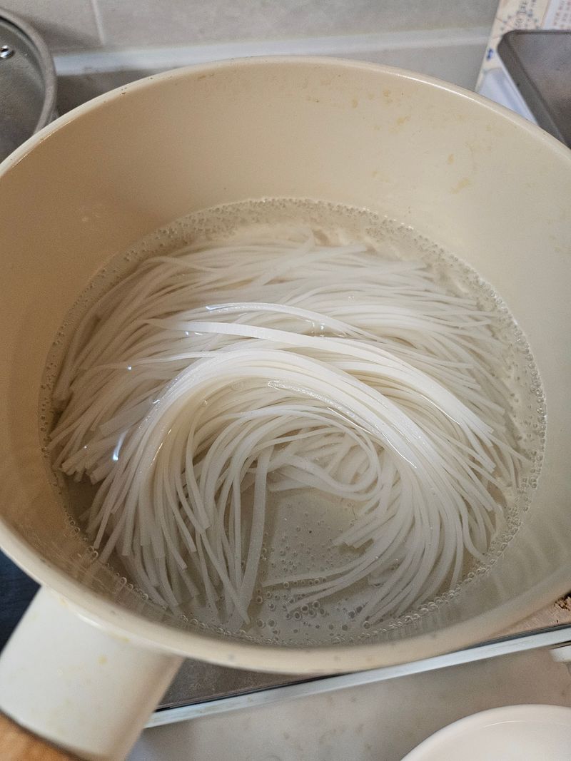 1. 라이스누들 쌀국수용 3mm를 미지근한 물에 30분간 불린다.
