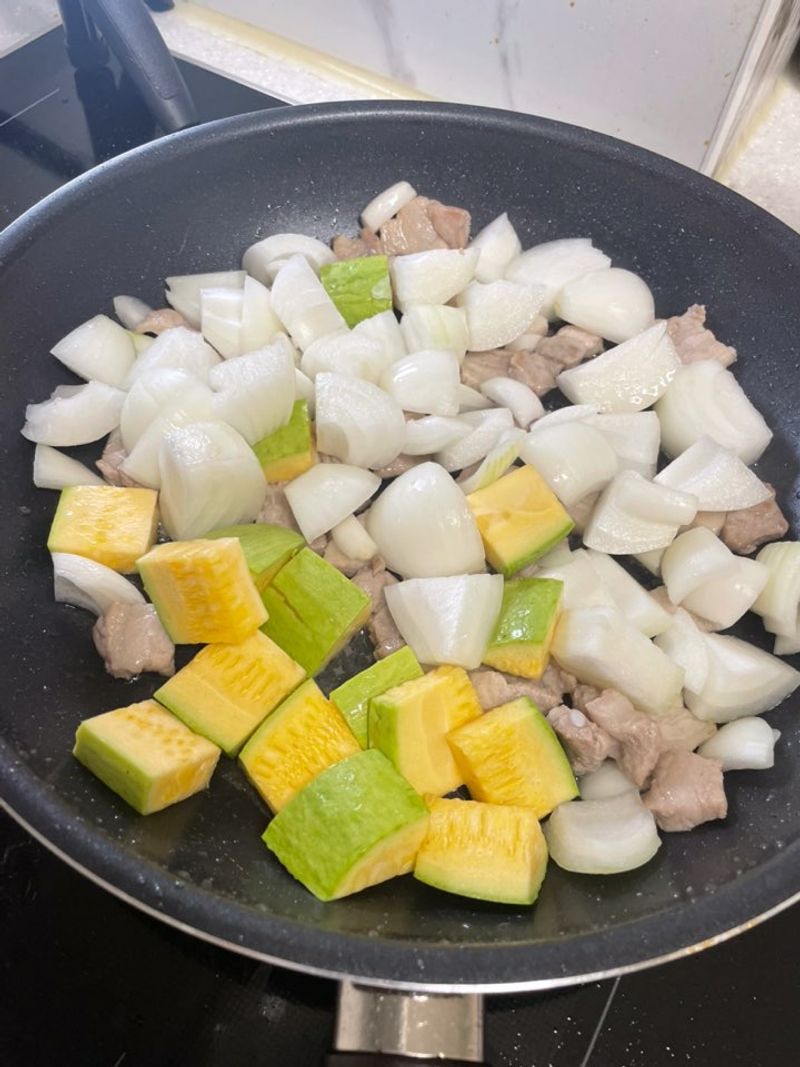 처음으로 애호박을 넣고 만들어 본 간짜장스타일의 짜장입니다.