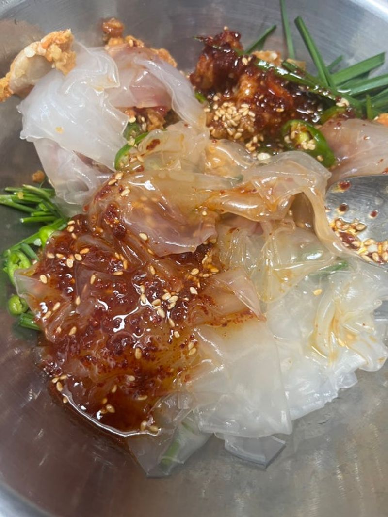 라이스 페이퍼의 쫄깃함과 아삭한 부추가 생각보다 정말 잘 어울려요.