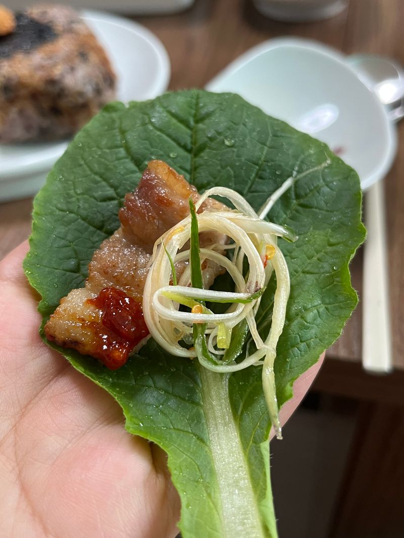 틔운 미니로 키운 쌈추 어떻게 먹을까 하다가 역시 삼겹살에 쌈이지~ 하고 삼겹살 구웠네요 ㅎㅎ 다 먹고 기름 튄 거 열심히 닦으면서.. 아.. 삼겹살은 밖에서 사먹어야겠다 다짐했네요!!🤣
