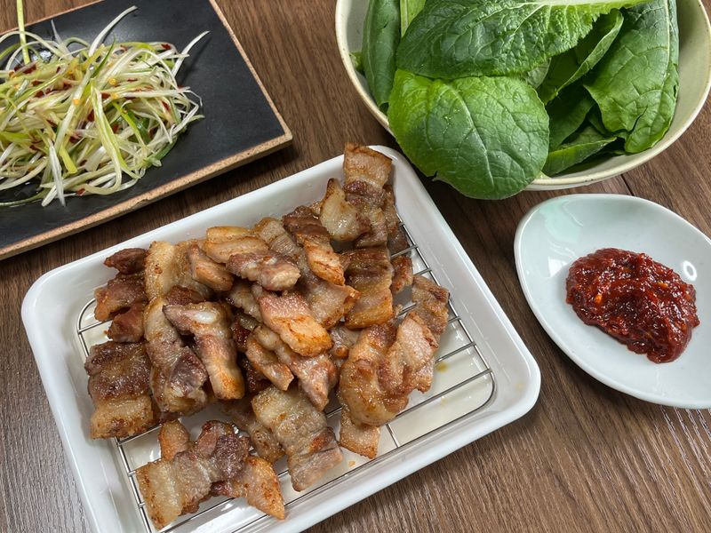 삼겹살 구워 만능소스만 부어주면 완성!