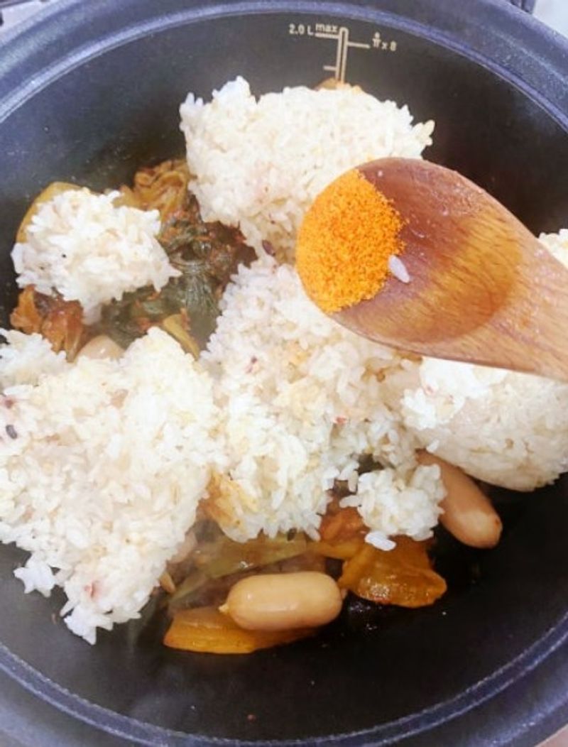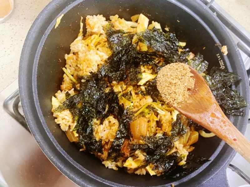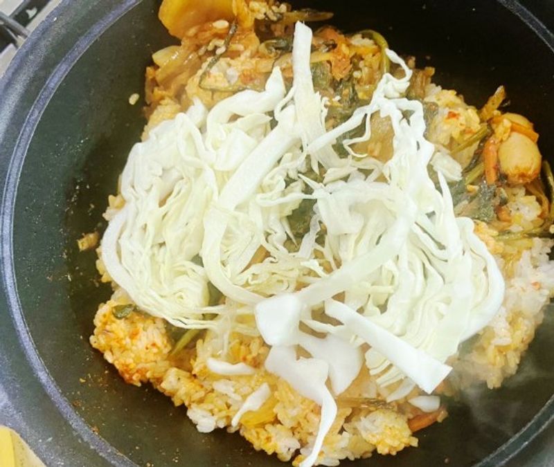 고추장소스 넣은 양배추 김치 볶음밥