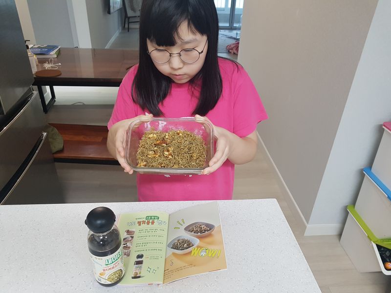새미네 멸치볶음 양념으로 아이가 직접 전자레인지로 아주 쉽고 빠르게 만들었어요 맛도 너무 맛있다고 이거 밥도둑이네 하면서 밥한공기 뚝딱했답니다