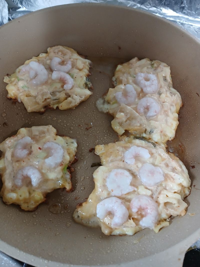 3;기름을 두르고 새우치즈김치전을 노릇노릇하게 구워주