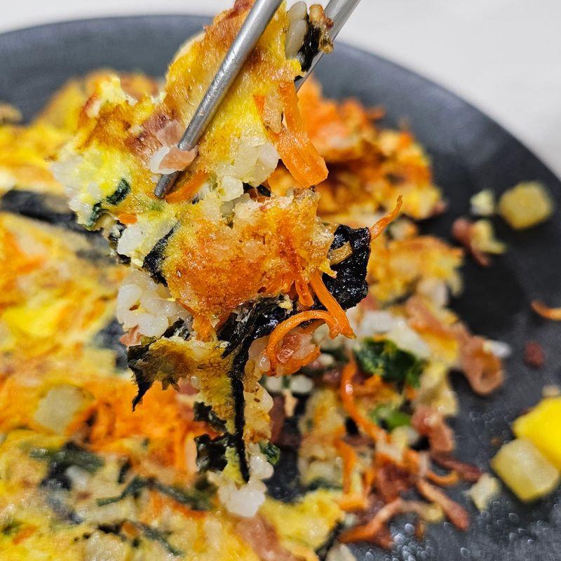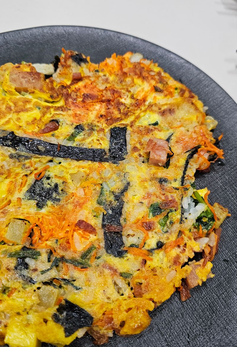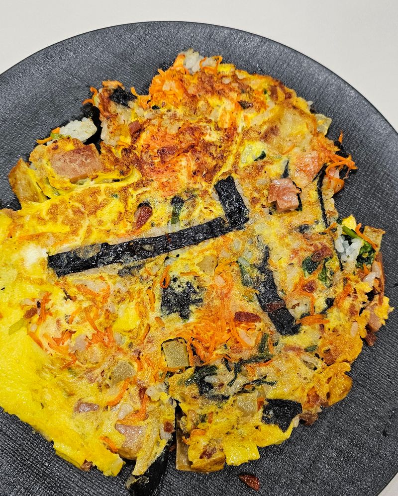 먹다남은 김밥으로 김밥전을 만들려고했는데.. 만드는 과정에서 김밥이 다 터져버려서 그냥 엄청 큰 김밥 부침개를 만들었어요.. 이상하게 생겼지만 맛은.. 나름 계란볶음밥 맛이랍니다? ㅎㅎ 혹시 똥손대회 다시 안열리나요? 1등 자신있는데