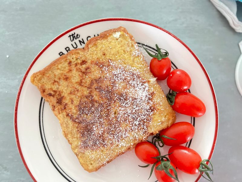 #낭만파티요리 #슈가파우더 프렌치토스트 슈가파우더 만으로도 크리스마스느낌이 나네요 어쩌다보니 아침엔 토스트, 점심엔 프렌치 토스트가 되엇지만 직접만든 감귤쨈과 빨간방울토마토로 색감이 더해지니 눈도 입도 즐거운 식사시간이엇어요
