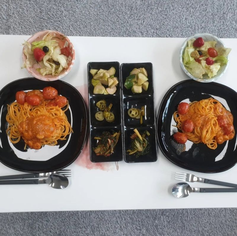토마토파스타와 샐러드로 홈파티 간편하고 맛있게.