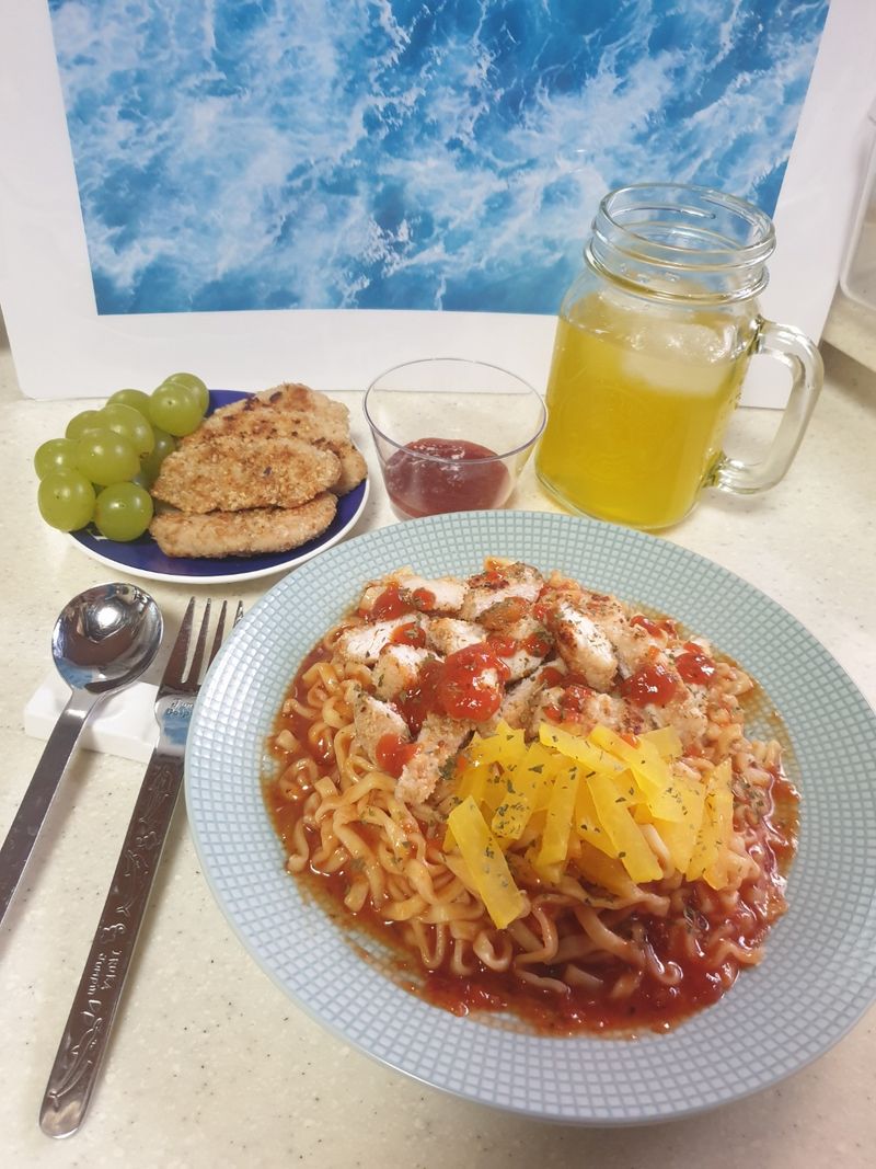 닭가슴살튀김만 올리면 라면도 파스타로 변신!!!
