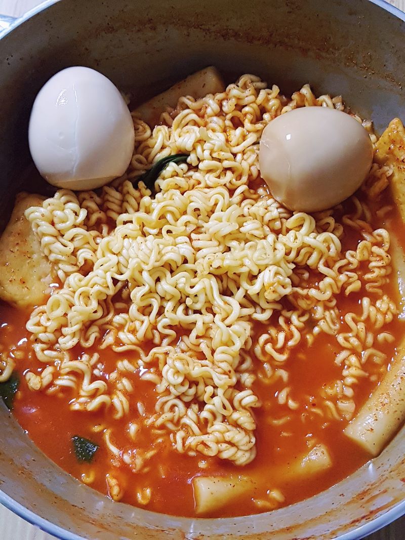 남은 떡볶이에다가 구운 계란하고 라면 넣고 라볶이 했는데 어찌나 맛있었던지.. 숨 쉬는 법을 잊었네요