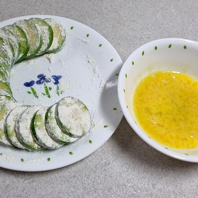 밀전병은 밀가루와 찹쌀가루를 섞어서 얇게 부쳐주고 잘라줘요. (얇게 부칠수록 맛있어요! )