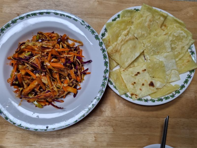 집에서 간단하지만 맛있게 만들어먹는 밀전병과 야채무침입니다.