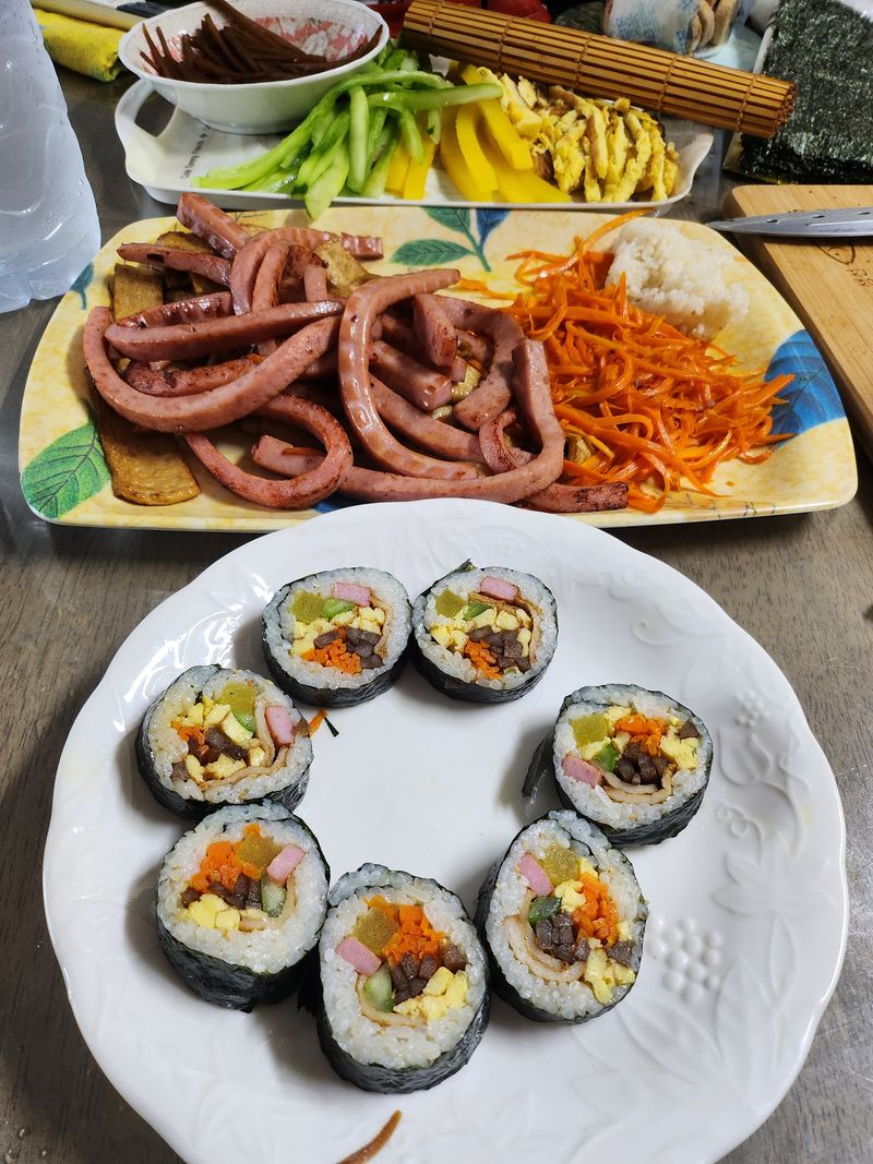 김밥은 먹어도먹어도 또 먹고싶은 음식 ㅡ정말 맛있어 보이네요 현숙씨 언제한번 싸주세요ㅡ ㅋ ㅋ