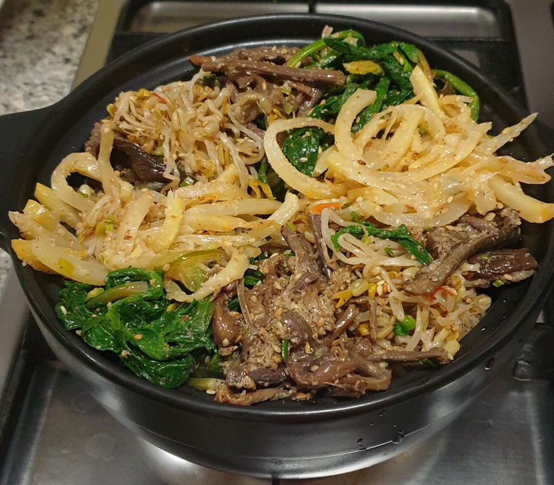 집에있는 나물로 후다닥만든 나물볶음밥 고추장 슥슥비벼서 한입하면 꿀맛이에요. 중간중간 씹히는 누룽지랑 너무 맛있게 잘먹었습니다.