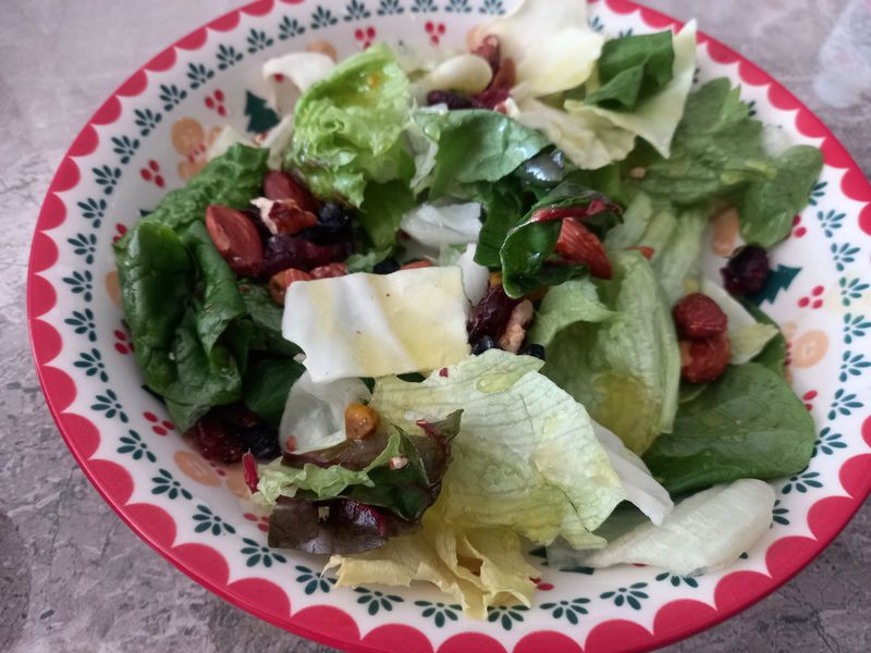 샐러드는 견과류나 발사믹을 토핑하기도 하고 집에 있는 재료들을 활용하면 좋더라고요