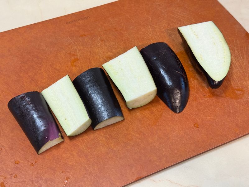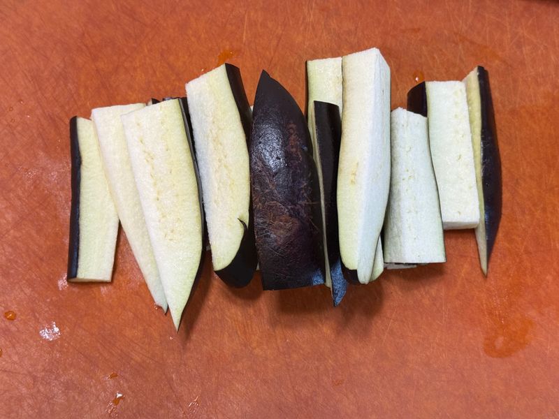 🔹 가지와 양배추 모두 짜장에 넣을 것이라 깍둑썰기를 선택했어요. 가지는 새미네 재료손질에 나온대로 먼저 삼등분을 한다음에, 반씩 나눠주고 길다랗게 잘랐어요. 그런다음 깍둑썰기를 하닉까 미끄러지지도 않고 아주 편하게 잘 썰리더라구요. 양배추는 가운데 심이 있어서 자르기가 조금 힘들었지만, 그래도 설명에 나와있는대로 반으로 나눈다음, 심을 잘라나고 가늘게 자른다음 깍둑썰기를 하니 부서지지 않고 모양대로 잘 잘려나왔답니다!!