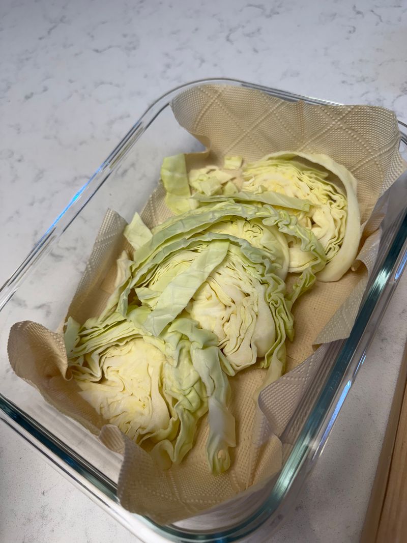 남은 양배추는 키친타올을 물에 적셔 한번 짜 준후, 덮어 랩이나 밀폐용기에 넣어주면