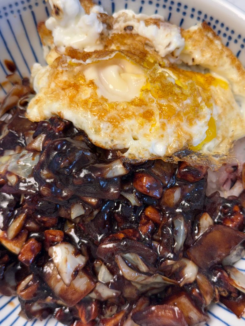 짜잔~ 저는 중국식 튀김계란프라이 같은 느낌으로 계란 프라이를 해보려 했으나 그냥 눌러붙은 계란이 되었고요 🥲 그렇지만 너무나도 맛있는 짜장밥이 완성 되었습니다. 그런데 양배추가 많이 들어가서 그런가 약간 간짜장 느낌이더라고요? 간짜장 러버라 오히려 좋았습니다 😘