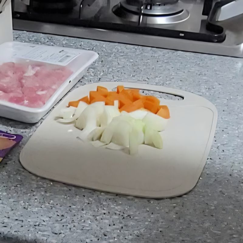 양파 - [4가지 양파 썰기] 솔루션에서 큼직큼직 깍둑 썰기 방법으로 진행했어요. 이건 동그란 채소를 반으로 잘라 깍둑 썰기를 하는 방법뿐이라서 솔루션 가이드만 잘 따라갔더니 금세 완성했어요! 다만 과정에서 두 가지 고민이 있었어요. (1) 껍질은 얼마나 벗겨야 하는 거지? 갈색의 껍질을 벗기려고 하는데 뭔가 양파까지 벗겨져 버려지는 기분이... (2) 눈이 너무 매운데 따로 방법이 없나? 정도였습니다. 설명이 너무 자세해서 좋았어요.