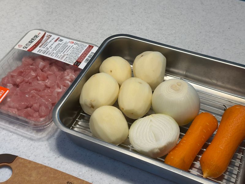 깍둑썰기로 재료가 고르진 못하지만 다 자르고 나니 나름 뿌듯하고 재밌었어요!
