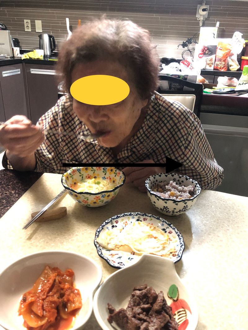 어머니가 한그릇 맛있게 다드셨습니다 .
