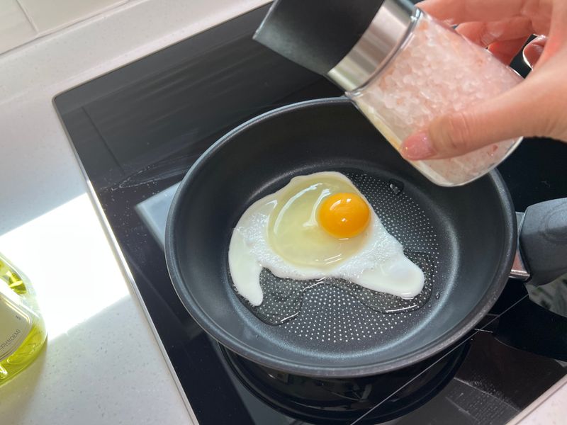 약 2분정도만 기다려주면깔끔하게 계란 완숙후라이가 완성됩니다!!!