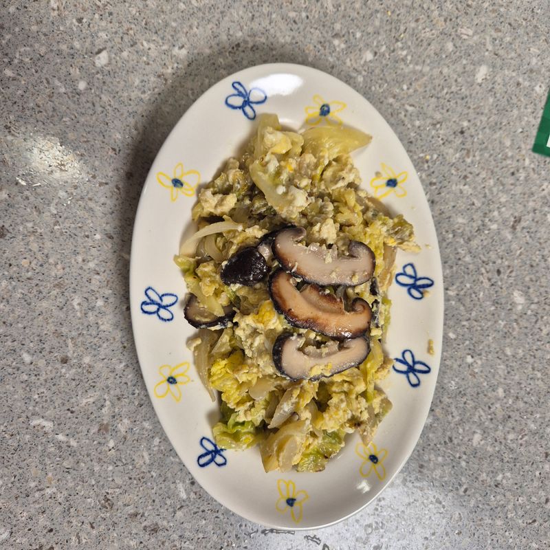 재료는 양파,양배추,표고버섯,계란2개,물150ml,연두순 한스푼,식용유 2스푼