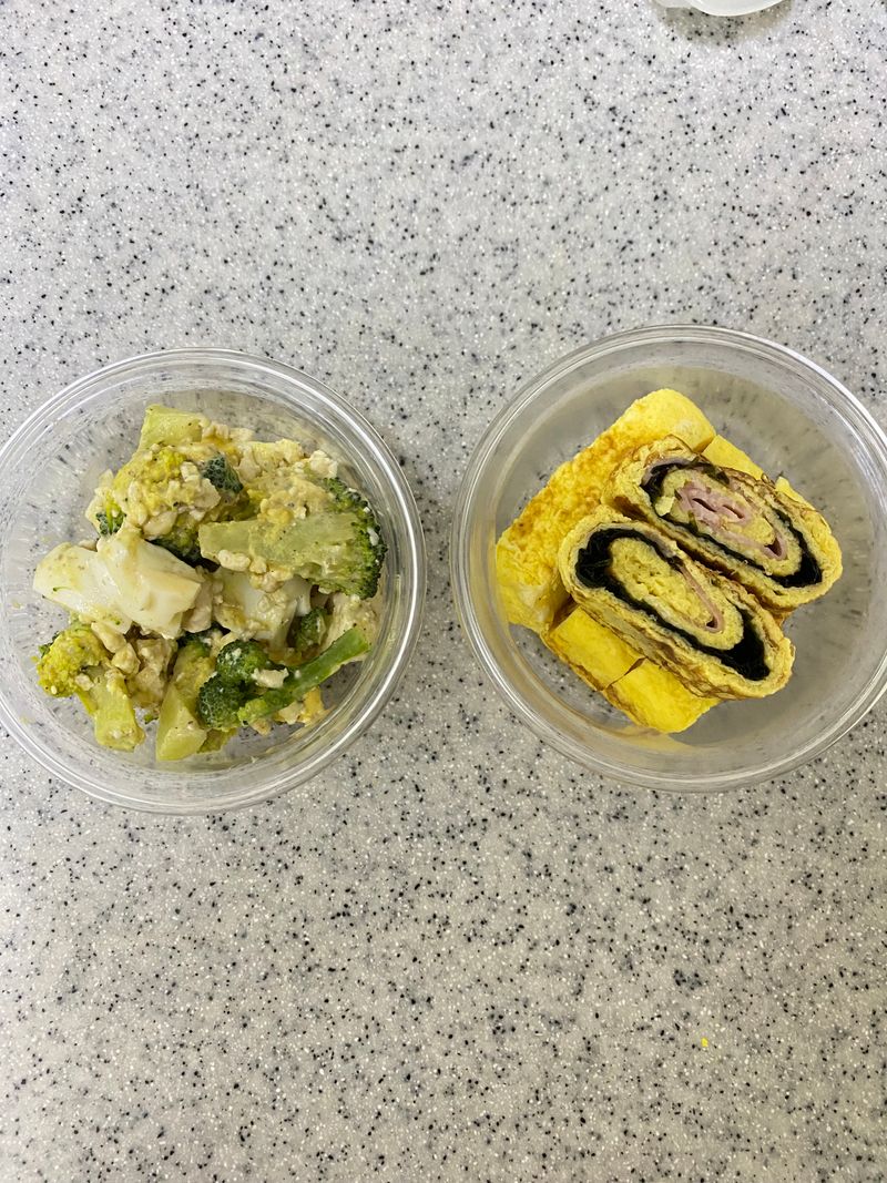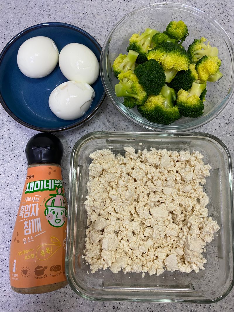 재료는 계란3개와 두부 반모 , 브로콜리 1송이