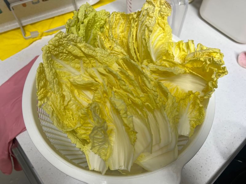 그 후 잘라진 알배추에 겉절이 소스를 넣어 조물조물 비벼주면 끝!