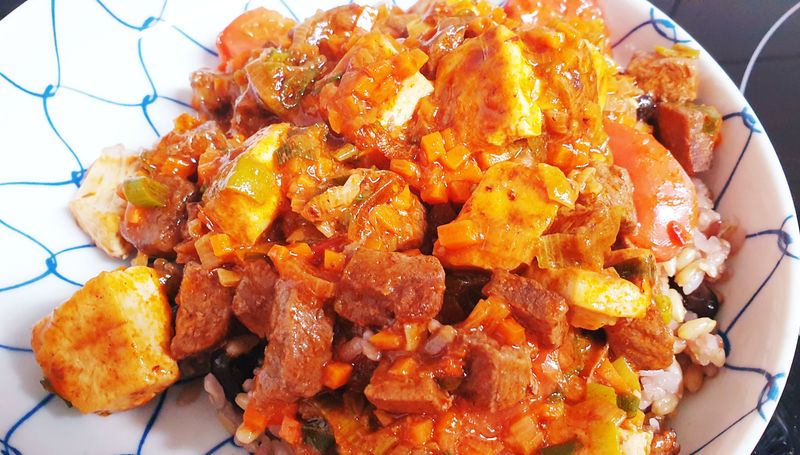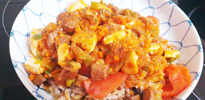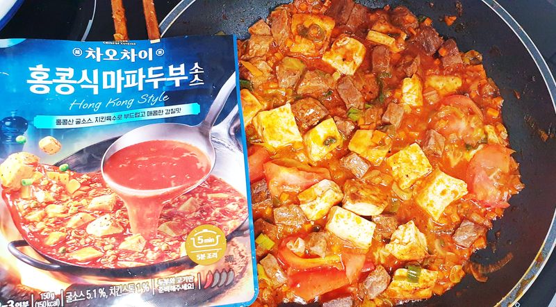 두부와 집에있던 소고기를 각각 구운다음 샘표 마파두부 소스로 볶아내면 더ㅡ욱 푸짐하고 근사한 요리가완성됩니당~^^ 간단하고 조리시간도 뚝딱이라 자주해먹는 두부요리에요~~^^