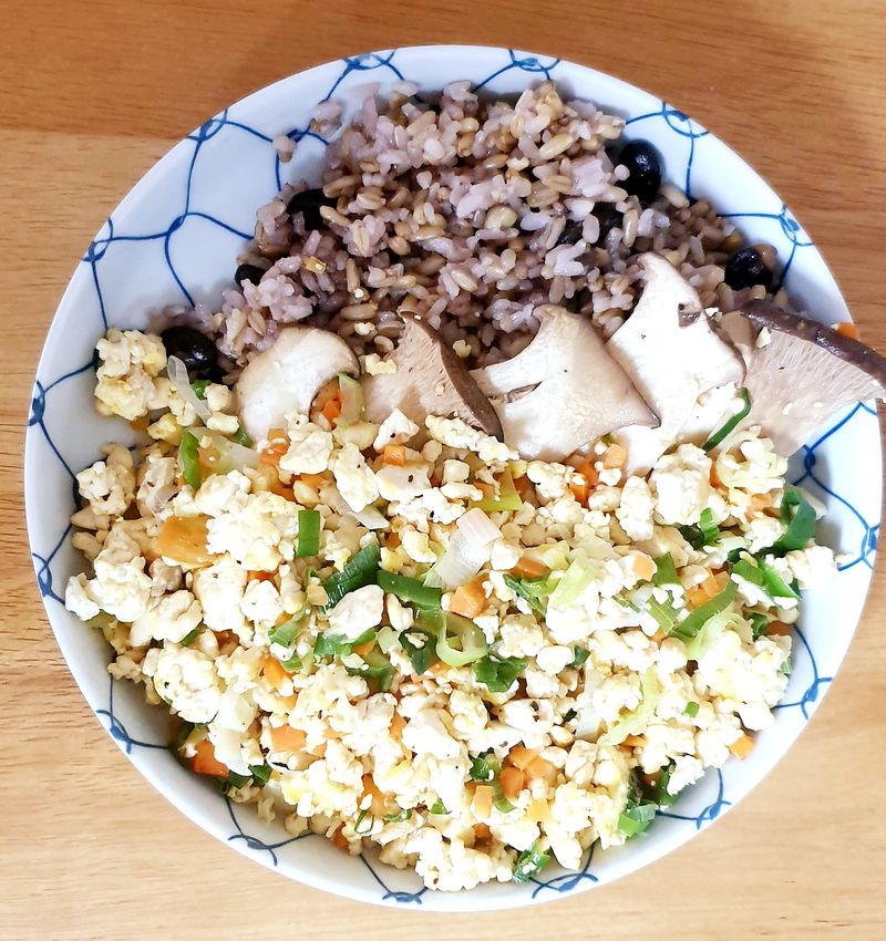 오늘 저녁, 냉장고에 있는 새송이버섯과 두부, 그리고 계란을 활용해서 간단하면서도 영양가 있는 덮밥을 만들어 보았습니다.
