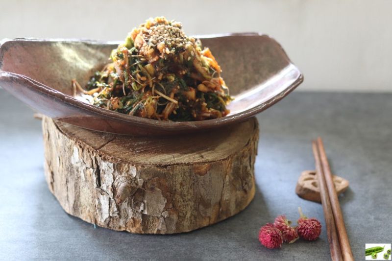 숨죽이며 내내 그 혹독한 겨울을 버티다가 개울물 흐르는 소리에 '이때다' 하고 언 땅을 지치고 나온 봄나물은 제대로 여물어 그 씹는 맛이 알싸하고, 흙 내음을 품어 향긋함이 일품입니다. 땅 속의 온 기운을 그대로 품고 올라와 날 것으로도 달고, 간을 해서 밥 위에 올려도 산뜻한 냉이무침을 만들어 봅니다.