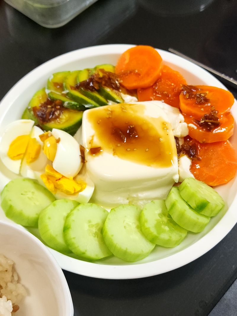 두부까지 곁들여 단백질도 꽉 채웠어요.