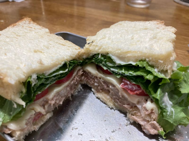 참치샌드위치도 가끔 만드는 요리입니다 참치는 기름을 쪽 빼고 다진 양파나 오이피클을 섞고 적당히 마요네즈를 버무립니다. 그리고 구운 빵에 버터 바르고 토마토, 치즈, 상추를 올려 마요네즈를 또 추가합니다.