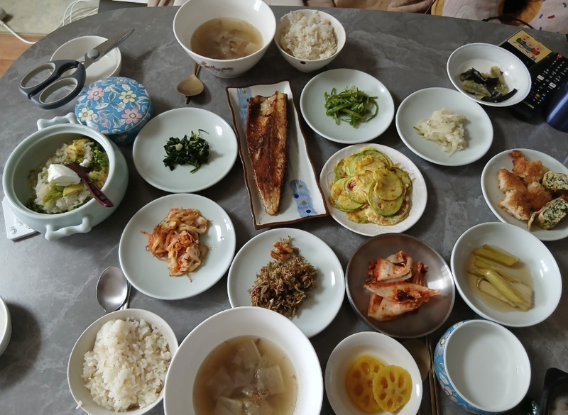 “많이 드세요. 가지가 튼실해서 맛이 좋아요. 생선도 잘 구워졌네요.”