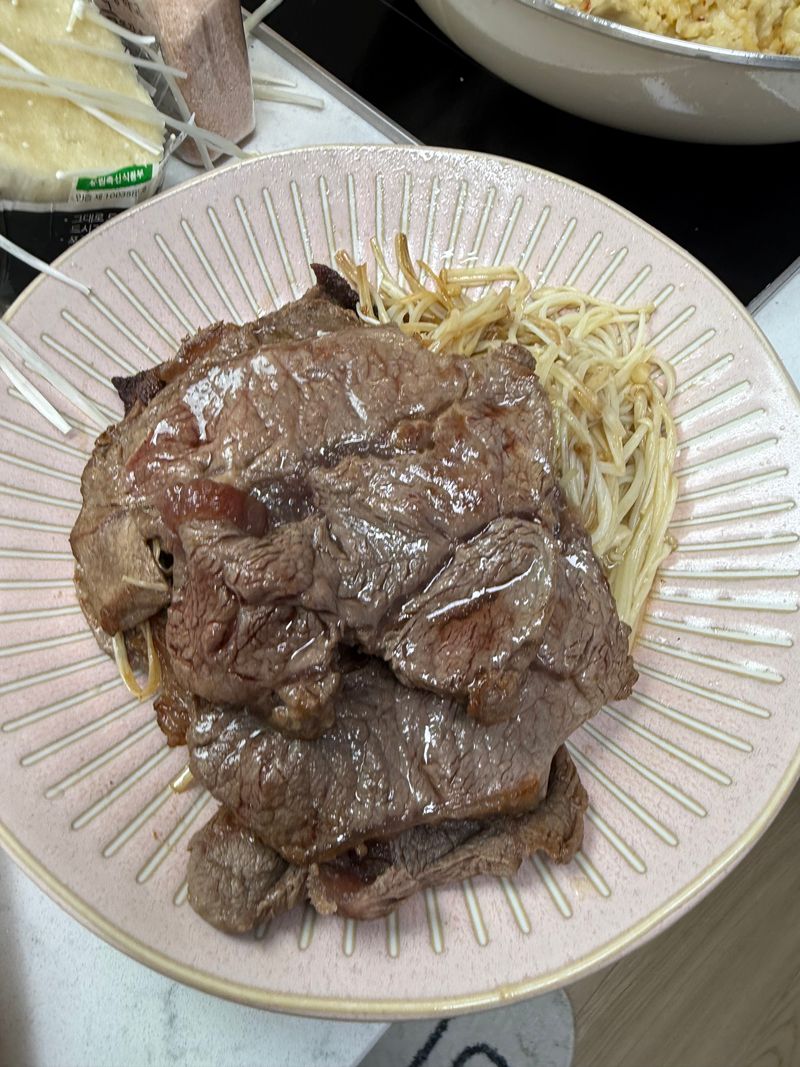 고기는 별거 없었는데 스텐 프라이팬을 처음 써본 동생이 저희 집 인덕션을 아주…. 😂😂😂