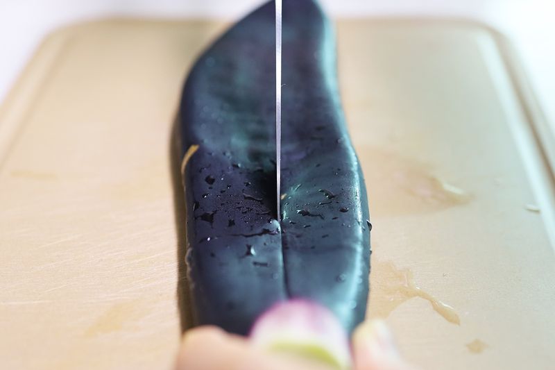 Step 2. 가지의 윗면을 세로로 길게 자르기