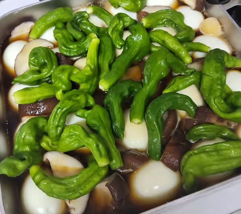 달걀삶고 꽈리칼집내고 표고버섯 넣고 샘표 간장과 장조림소스만 부어주면 완성 여름 간편하고 건강한 밥반찬 꽈리고추와 버섯 달걀 삼합 먹으면 밥도둑