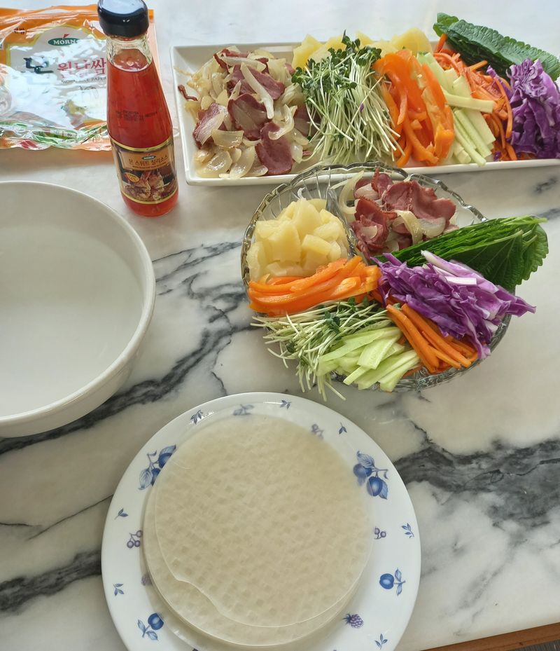 야채 썰어 오리훈제와 함께 월남쌈 풍성한 여름야채 많이 많이 먹을수 있는 요리