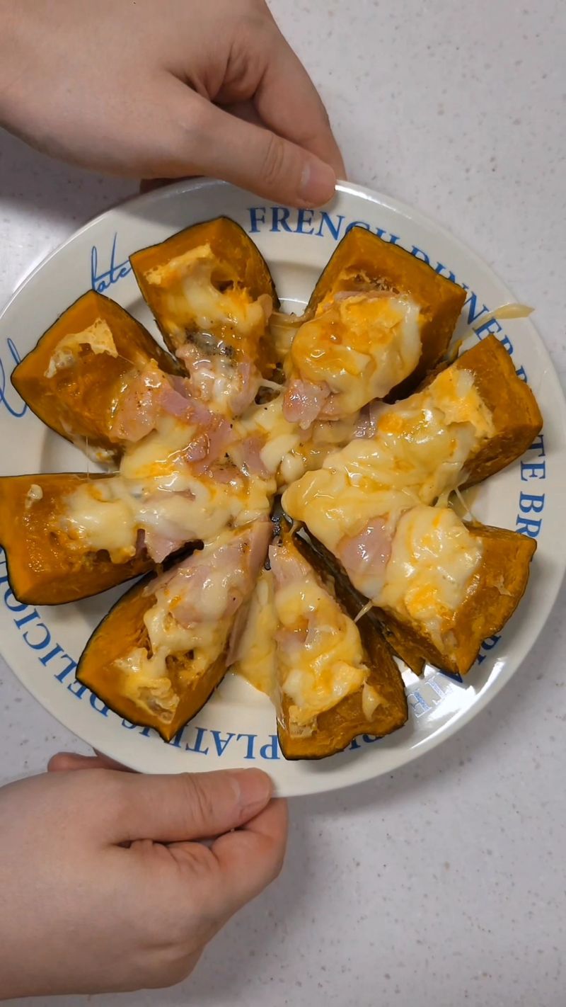 베이컨과 계란, 모짜렐라치즈까지 더해져 단호박의 맛을 풍부하게 만들어준답니다.