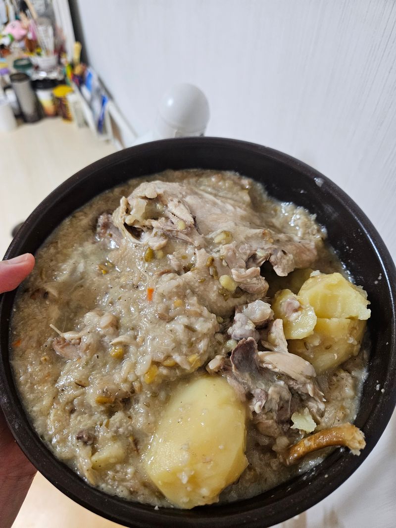 통감자를 압력밥솥에 같이찌면서 백숙을 하게되면 감자가 정말 구수하게 익어요~