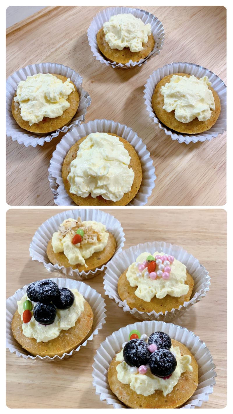 집에서 잠자고있던 휴롬으로 당근 착즙하고 남은 당근 찌꺼기랑 다진당근이랑 섞어서 견과류와 함께 넣어 머핀을 만드니 식감도 좋고 맛있었어요👍🏻