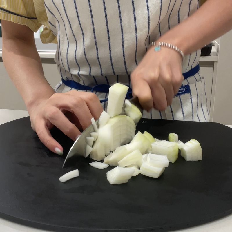 애호박과 양파 모두 손질이 쉽지 않은 재료인데, 천천히 집중하면서 예쁘게 썰어내신 게 느껴져요💛