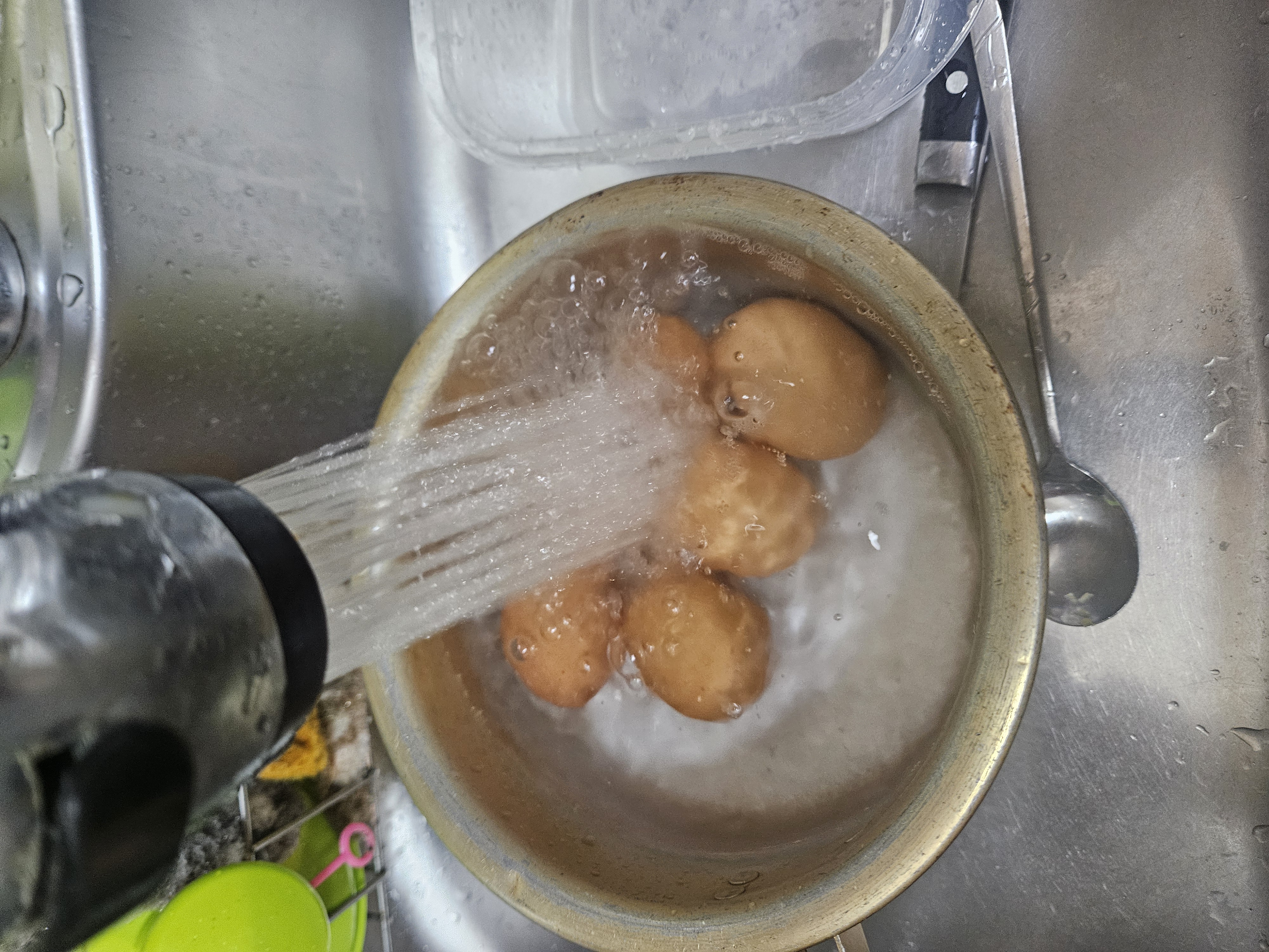 찬 물에 헹구면 잘 까진다길래 찬물로 열심히 식히고 껍질 까는데 그래도 잘 안까지네요ㅜㅠㅠ 달걀은 왜 이리 안까질까요,,
