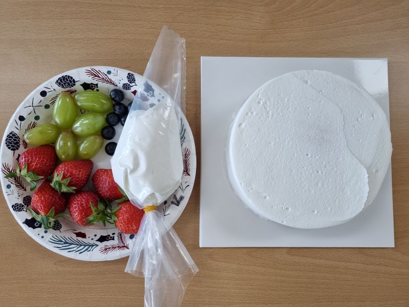 케이크시트와 생크림을 직접 짜고, 과일을 얹는 과정을 하며 아이의 선호를 물어보는 대화의 시간을 나눴습니다.