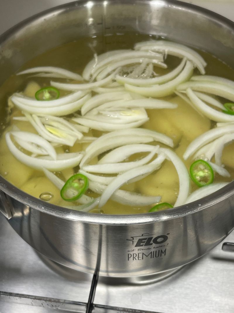 감자, 양파, 청양고추를 썰어 준비합니다.