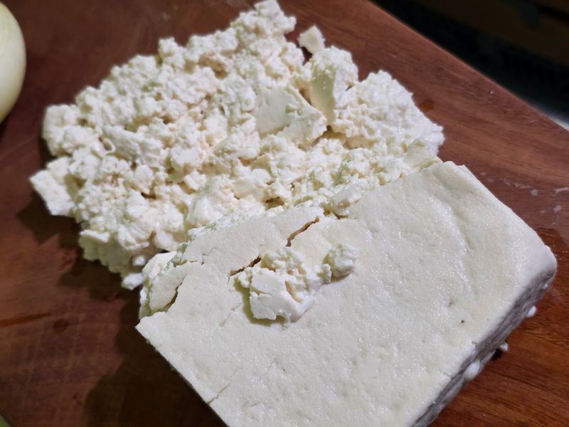 먼저 레시피대로 두부를 으깨고 볶고 계란물을 만들어 요리