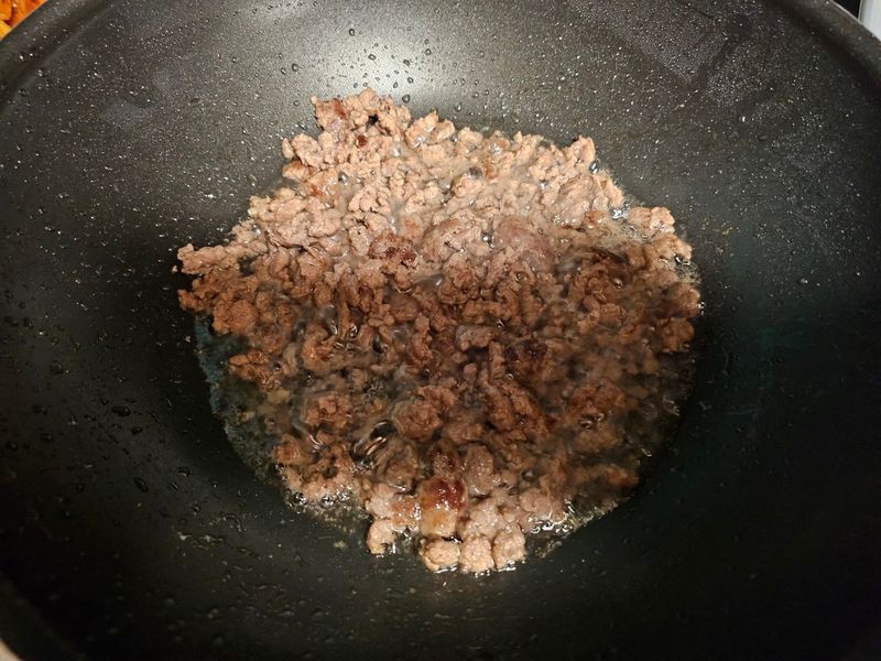 새미 손질법을 참고해서 두부와 파 손질도 어렵지 않았고, 저는 기름을 최소화하려고 돼지고기 다짐육을 먼저 볶아 고기기름을 내고, 그 기름에 파를 볶았습니다.
