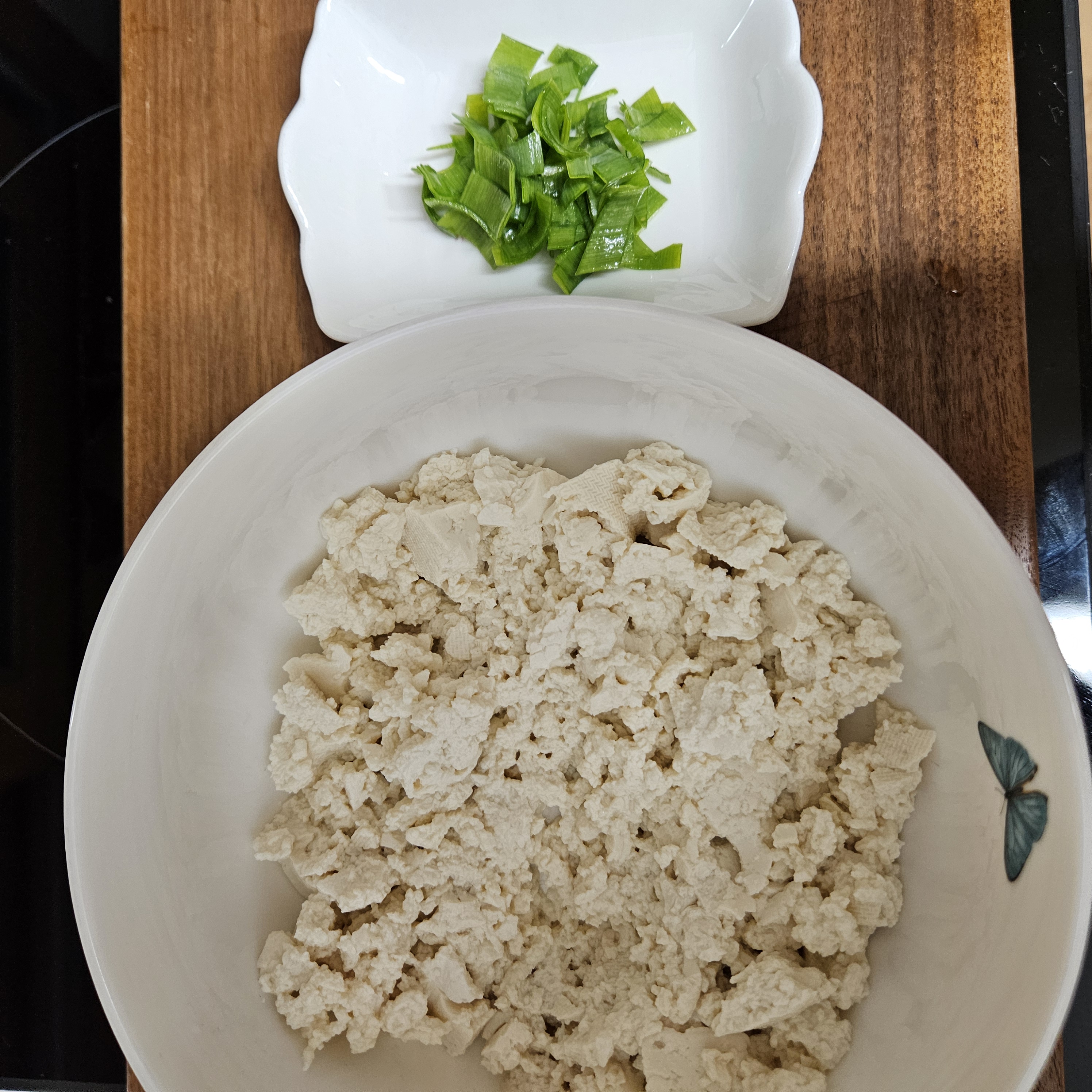 레시피에는 두부 한 모가 4인분이라 적혀 있어서 2명이 먹을거라 두부 반모만 사용하였습니다.