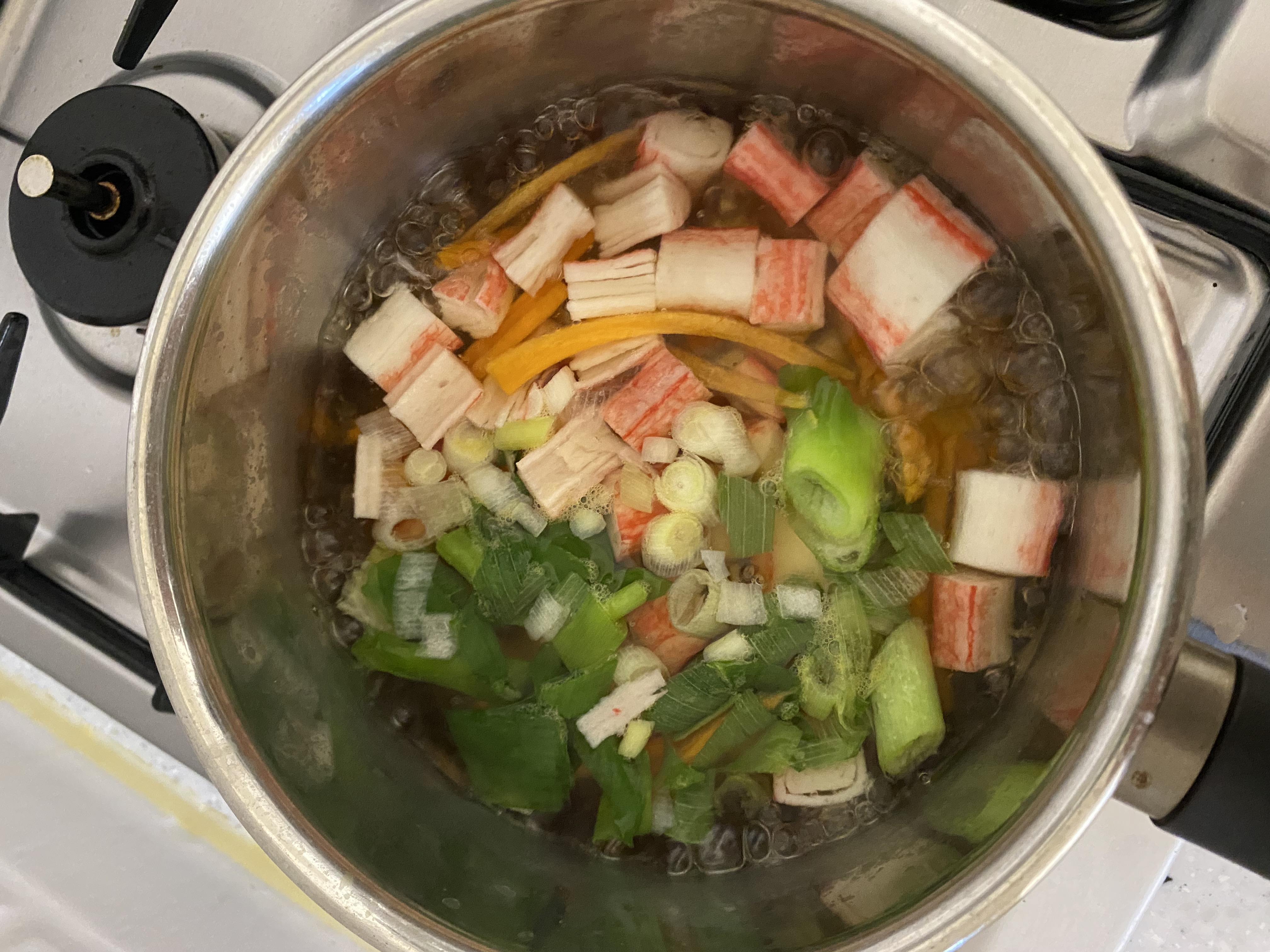 맛살을 안 찢고 잘라 넣었더니 어묵처럼 요상하게 퍼져서 웃겼지만